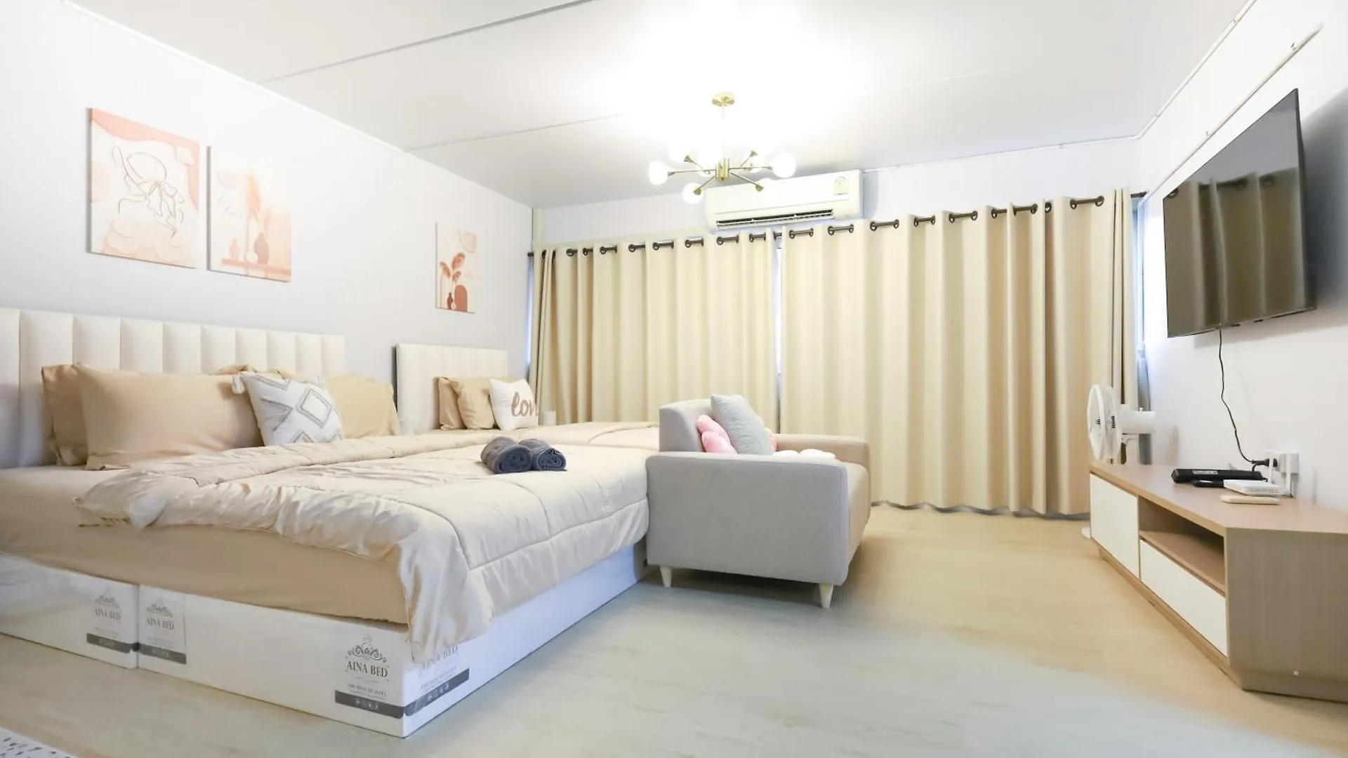 El apartamento Cozy 2Br Near Impact Arena, Ltat- Wifi Washer Near Dmk At C2 ofrece a sus huéspedes un cuarto de estar, así como comodidades tan modernas como climatizador. El apartamento cuenta con 2 dormitorios. En este apartamento, los huéspedes disfrutarán de la comodidad de disponer de secadores de pelo, toallas y zapatillas en el cuarto de baño. También encontrarás un inodoro separado y ducha.